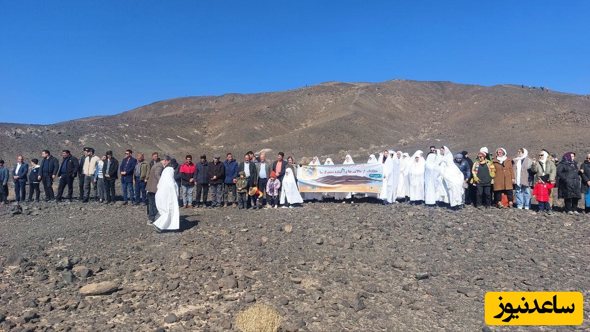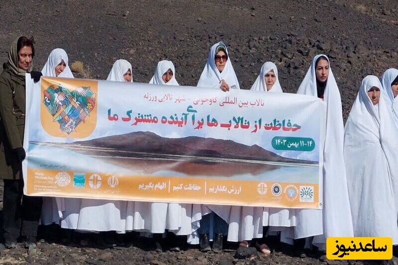 تصاویری از کمربند انسانی زنان کفن پوش برای حمایت از تالاب گاوخونی اصفهان