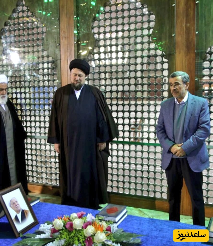 (+عکس) نگاه معنادار محمود احمدی نژاد به مزار آیت الله هاشمی رفسنجانی در حرم امام