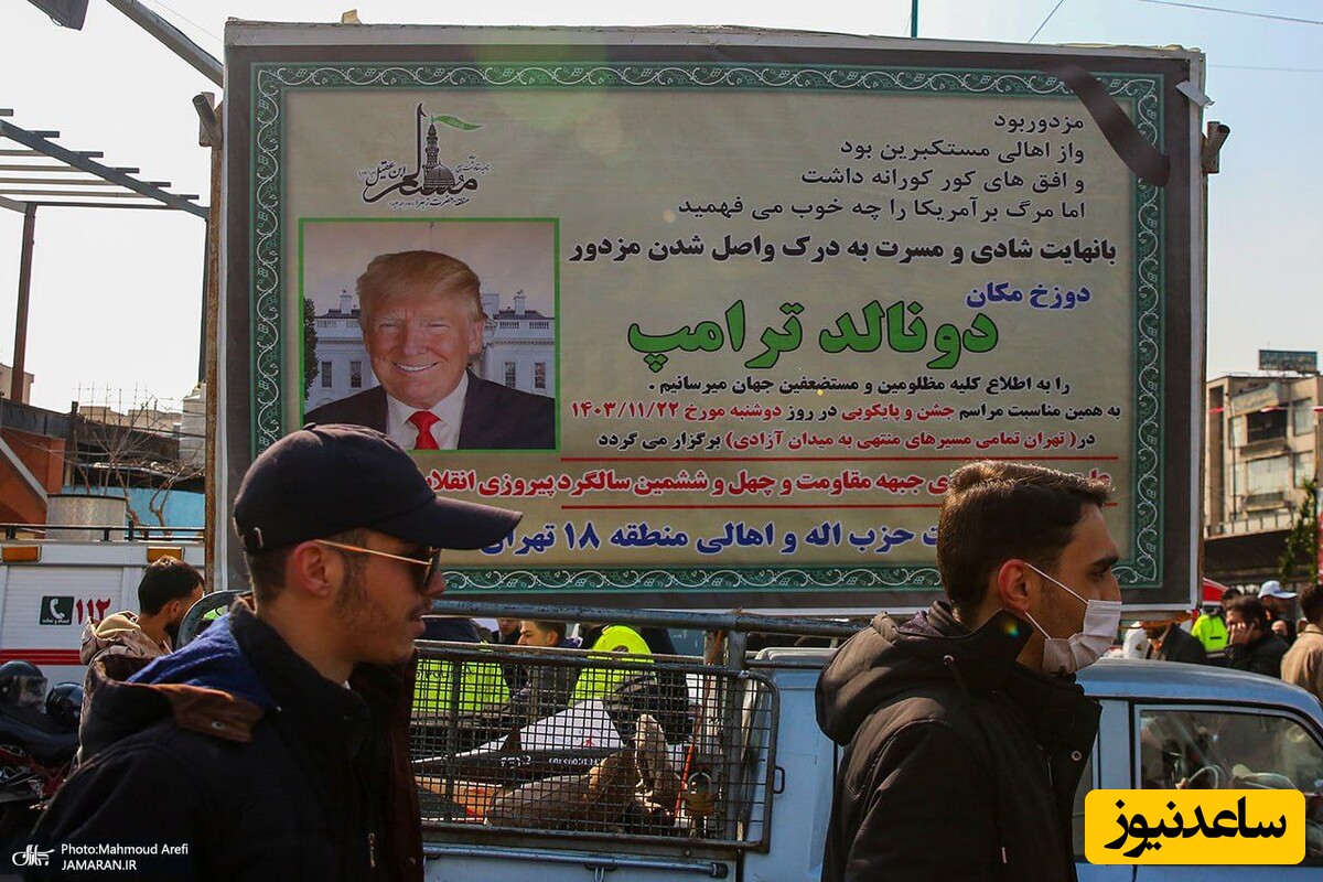 ساعدنیوز: راهپیمایی کنندگان امروز در یک حرکت نمادین اعلامیه ترحیم ترامپ را درست کردند.