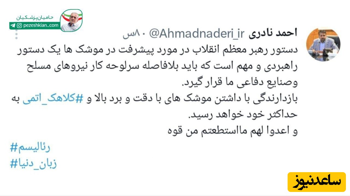 به گزارش سرویس سیاسی پایگاه خبری ساعدنیوز، احمد نادری در ایکس نوشت: