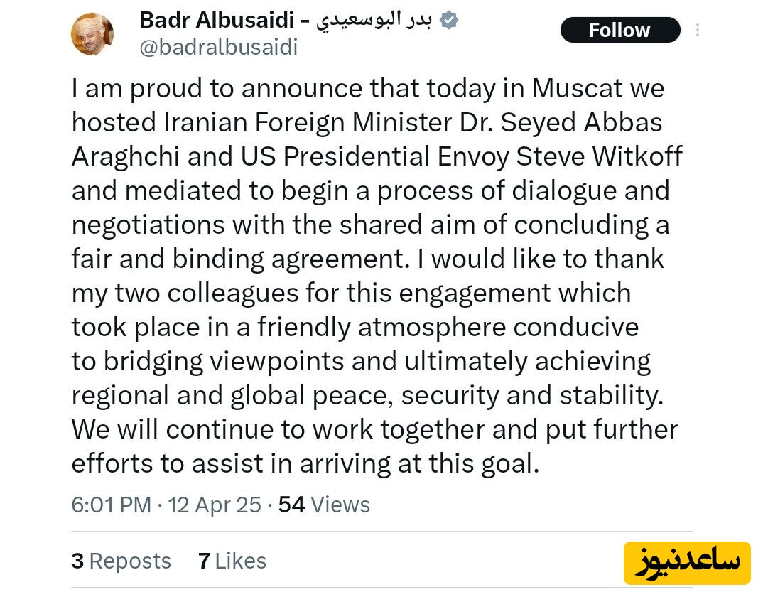 دقایقی قبل اولین پیام مکتوب نماینده ایالات متحده از طریق عمان به سید عباس عراقچی تحویل داده شد