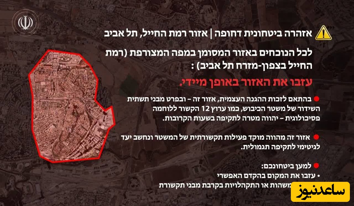 به اطلاع تمامی افرادی که در منطقه مشخصشده در نقشه پیوست (رمتهَحایال در شمالشرق تلآویو) حضور دارند: