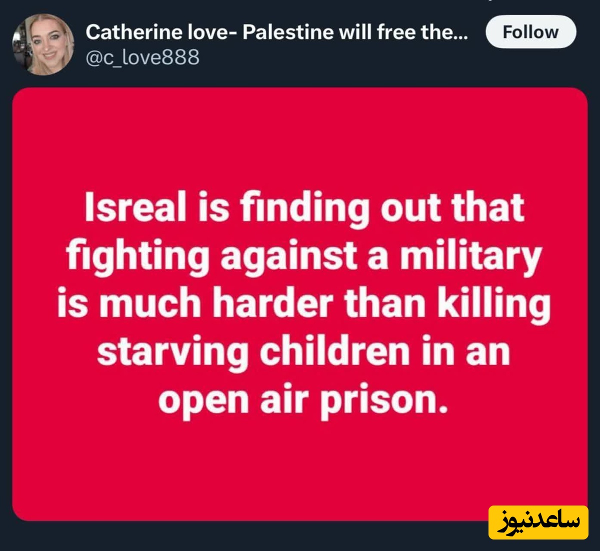 🔹هرگاه به پناهگاه فرار میکنم، به مردم غزه فکر میکنم. آنها حتی پناهگاه هم ندارند.