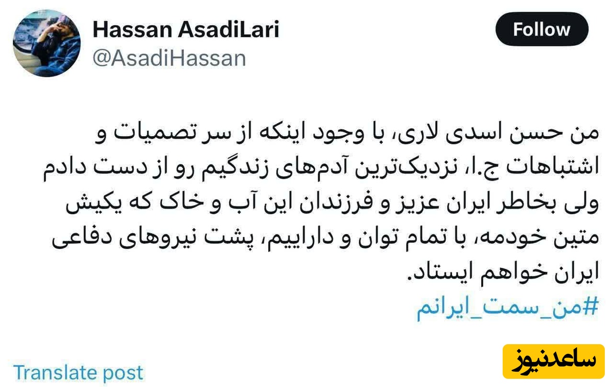 🔺به گزارش جماران؛ علی لاریجانی رییس پشین صداوسیما در واکنش به ایستادگی شجاعانه مجری و کارکنان صداوسیما در زمان حمله اسرائیل نوشت: آفرین بر شجاعت همکاران رشید و عزیز صداوسیما که با ایستادگی خود آبروی رژیم سفاک صهیونیستی را بردند.