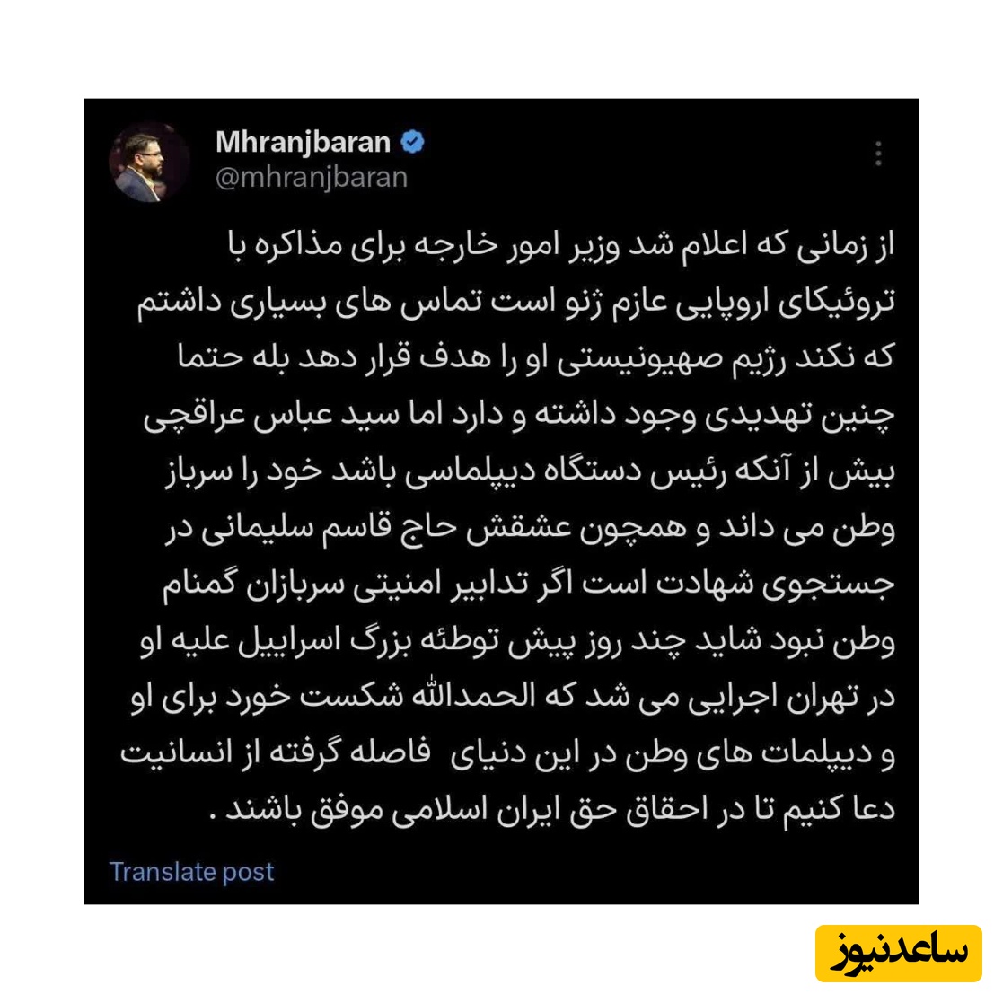 به گزارش سرویس سیاسی پایگاه خبری ساعدنیوز، رنجبران در توئیتر نوشت: