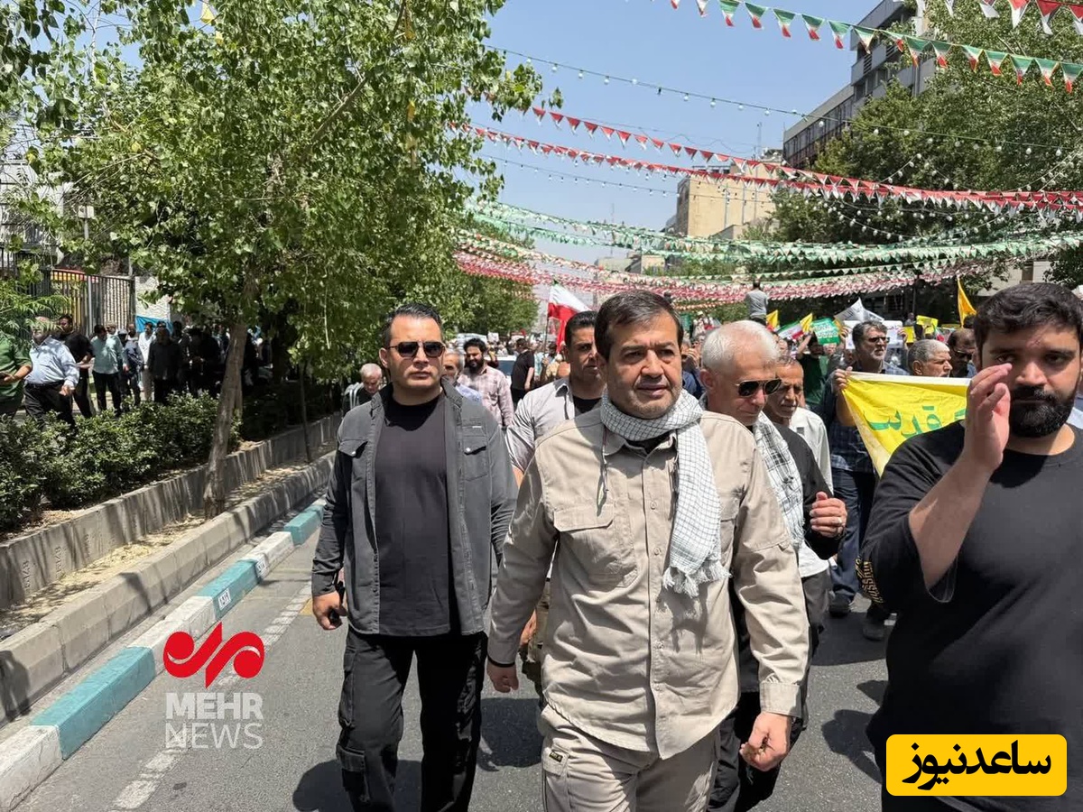 (عکس) حضور وزیر ورزش با لباس نظامی در تظاهرات امروز تهران / کسی از وزرای اسرائیل خبر داره؟ وزیر ما بین مردم در تهرانه