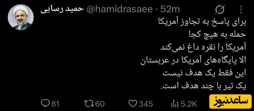 🔹برای پاسخ به تجاوز آمریکا حمله به هیچ کجا آمریکا را نقره داغ نمیکند الا پایگاههای آمریکا در عربستان. این فقط یک هدف نیست. یک تیر با چند هدف است.