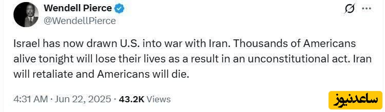 🔹«اسرائیل اکنون ایالات متحده را به جنگ با ایران کشانده است. هزاران آمریکایی که امشب زنده هستند، در نتیجه یک اقدام خلاف قانون اساسی جان خود را از دست خواهند داد. ایران تلافی خواهد کرد و آمریکاییها خواهند مرد.»