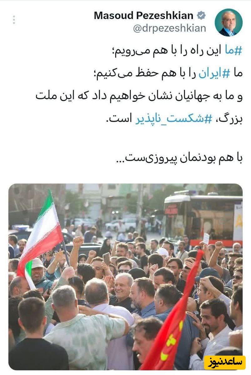 به گزارش سرویس سیاسی پایگاه خبری ساعدنیوز، پزشکیان در توئیتر نوشت: