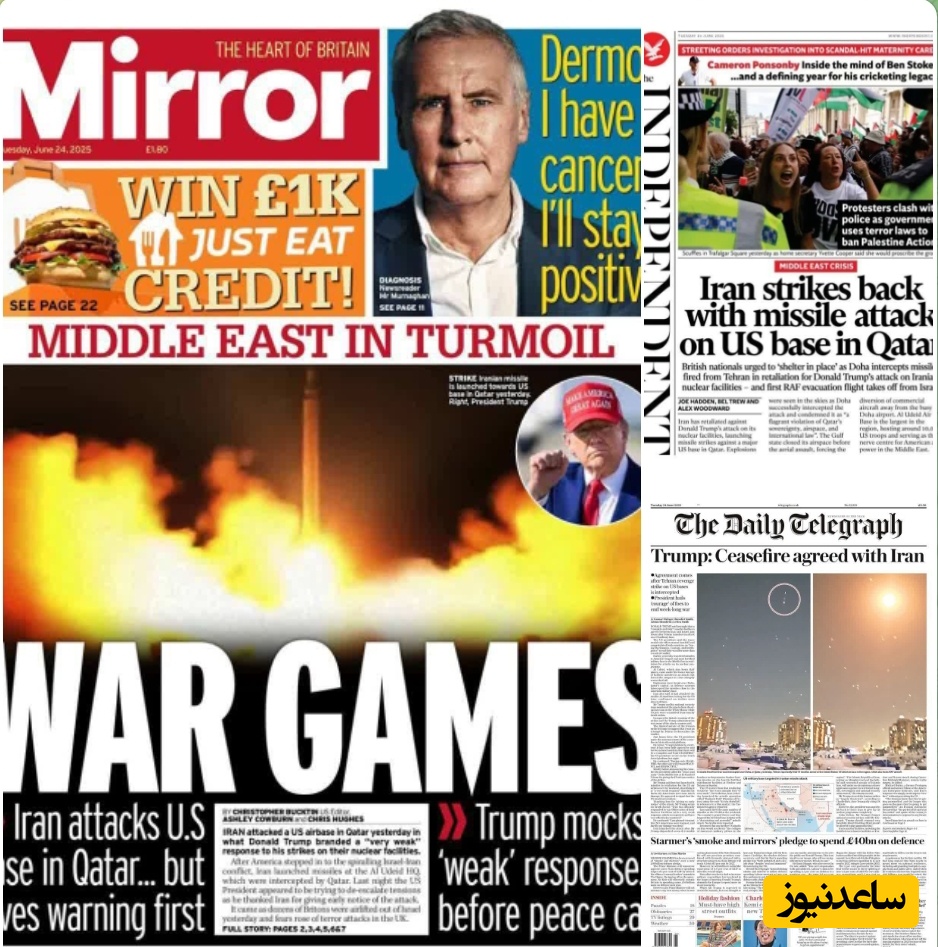 🔹ایندیپندنت نیز تاکید کرد که ایران با حمله موشکی به پایگاه آمریکا در قطر واکنشی جدی به اقدامات واشنگتن نشان داده است.