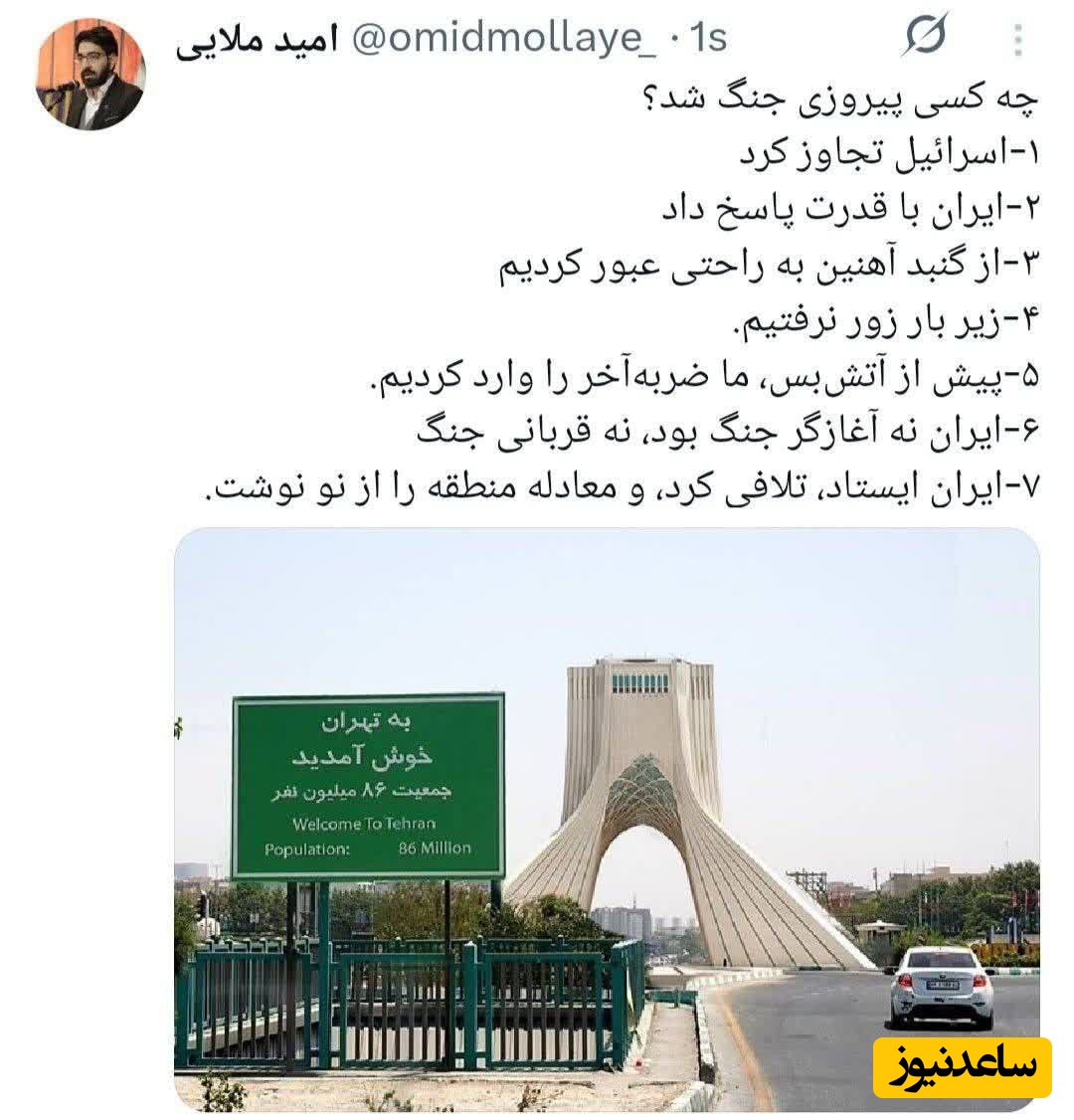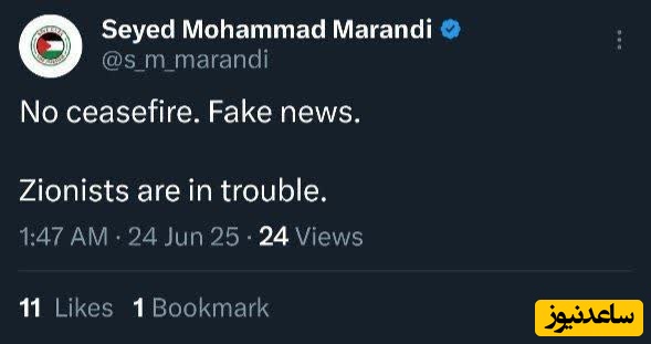 🔹برخی رسانهها پس از ادعای ترامپ درباره اتش بس، با اتکا به توییت محمدعلی شبانی گفته اند مشاور ظریف خبر پذیرش توافق اتش بس از سوی ایران را تایید کرده است
