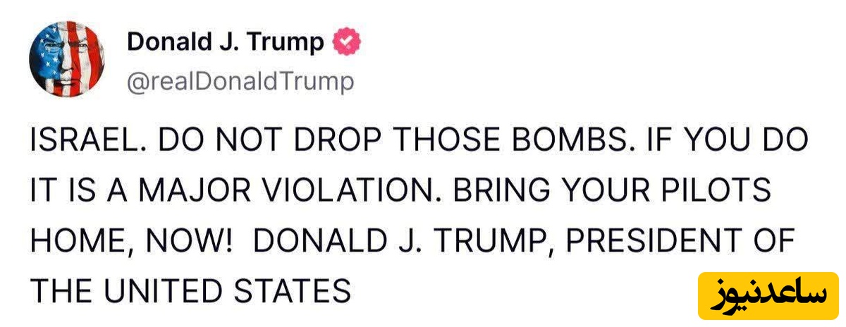 🔹رئیسجمهور آمریکا امروز با نخستوزیر اسرائیل تماس گرفت و از او خواست که به هیچ وجه به ایران حملهای انجام ندهد.
