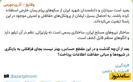 ساختار نیروهای مسلح ایران، ساختاری رسمی است نه پارتیزانی. نظم در آن تبلور دارد و الگوهای منظم قابل کشف. بجای فرافکنی بهتر است به بازنگری در شیوهها و مبانی حفاظت اطلاعات پرداخت.