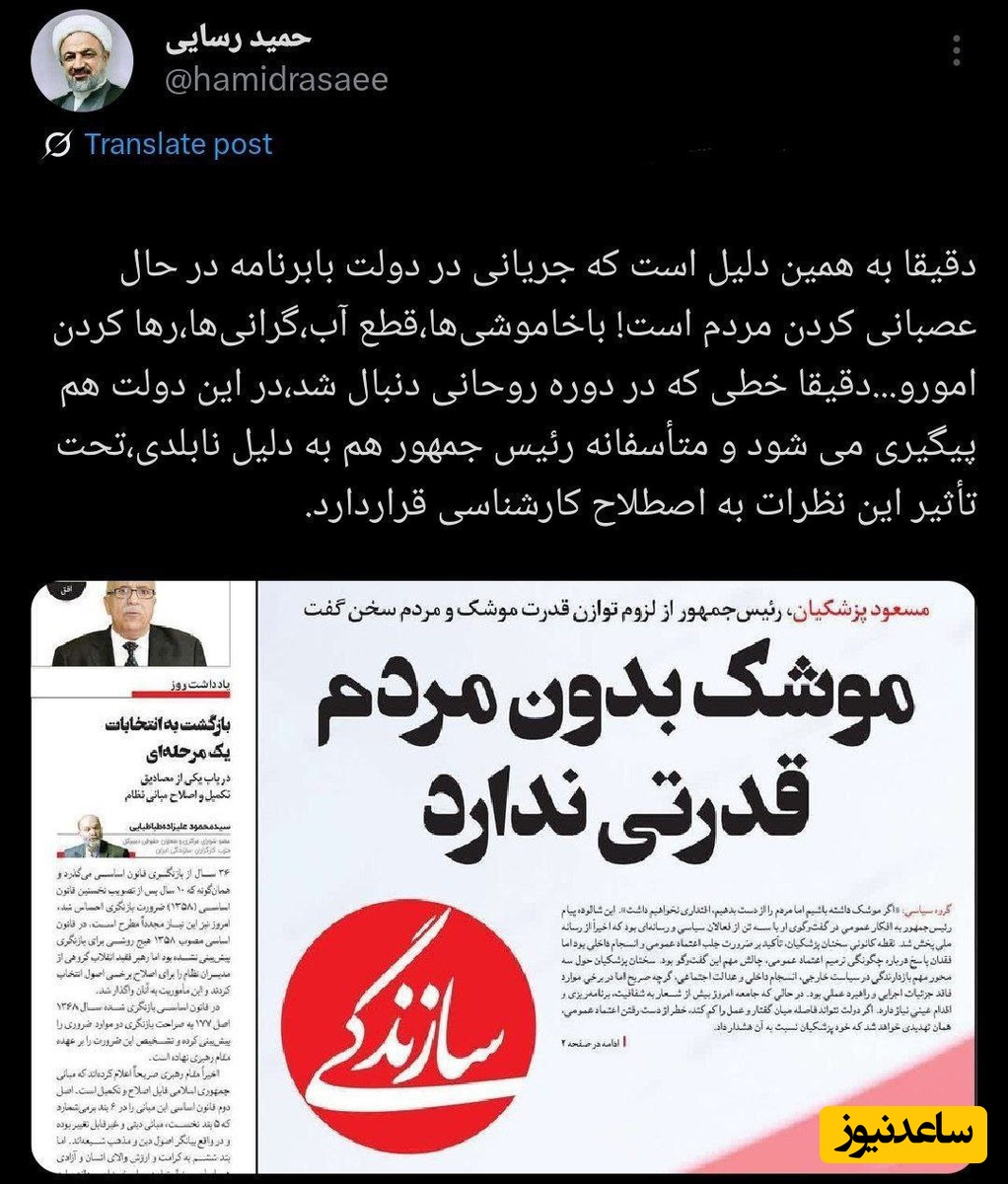به گزارش سرویس سیاسی پایگاه خبری ساعدنیوز، رسایی نوشت: