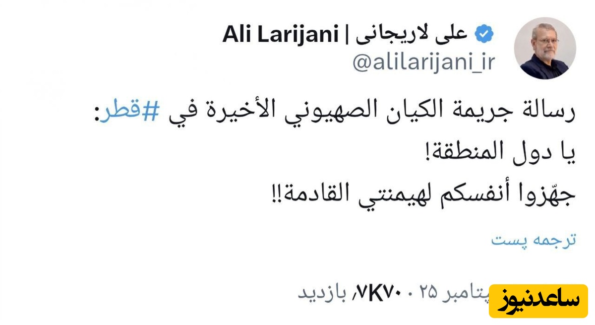به گزارش سرویس سیاسی پایگاه خبری ساعدنیوز، دکتر علی لاریجانی، دبیر شورای عالی امنیت ملی در پیامی توئیتری نوشت: