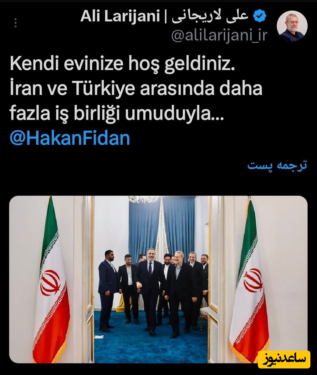 توییت علی لاریجانی: « به خانه خودتان خوش آمدید، به امید همکاری بیشتر بین ایران و ترکیه...»