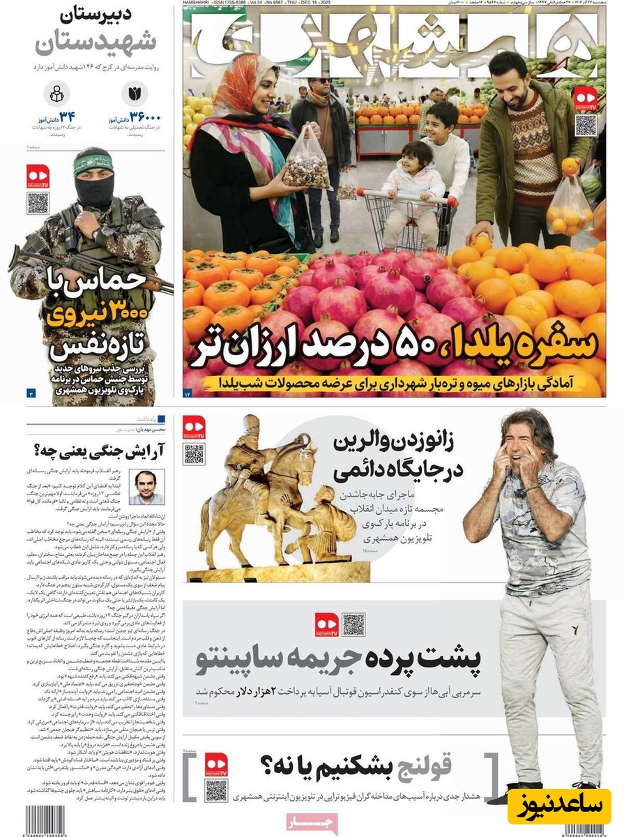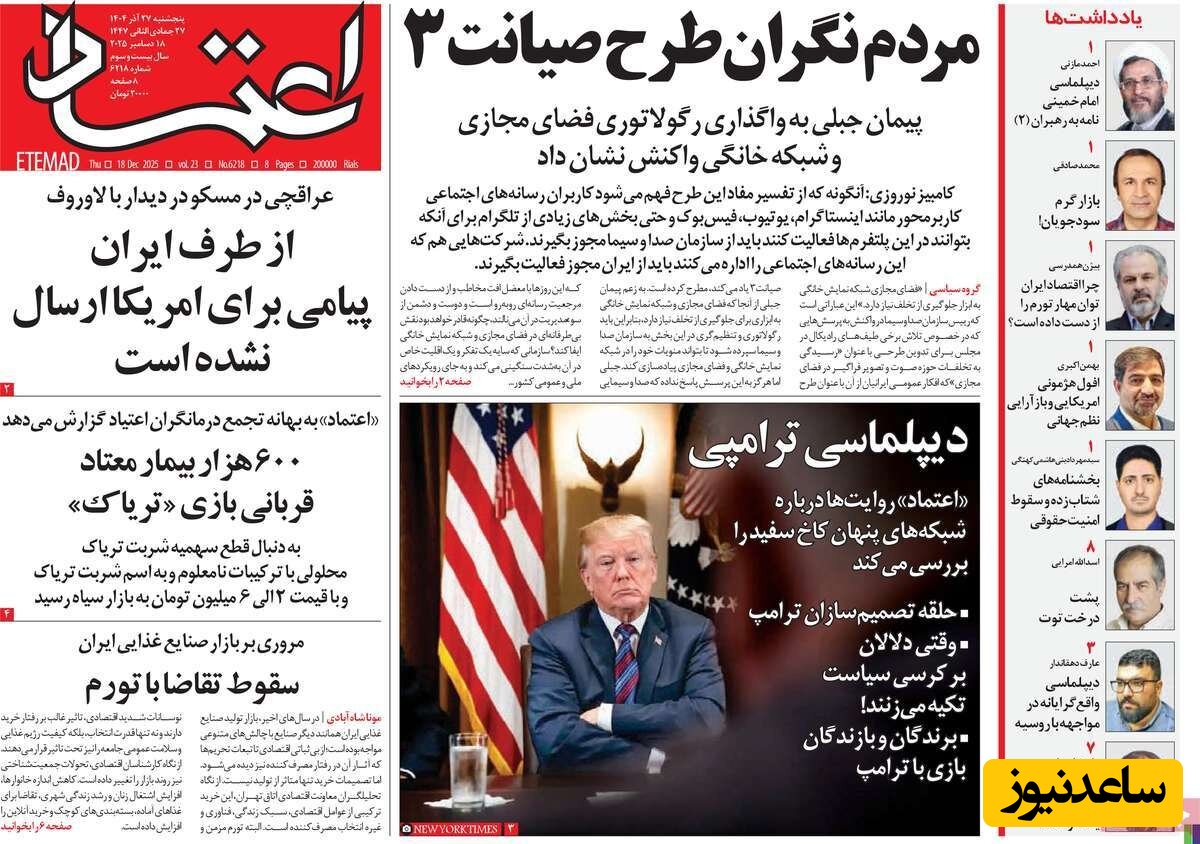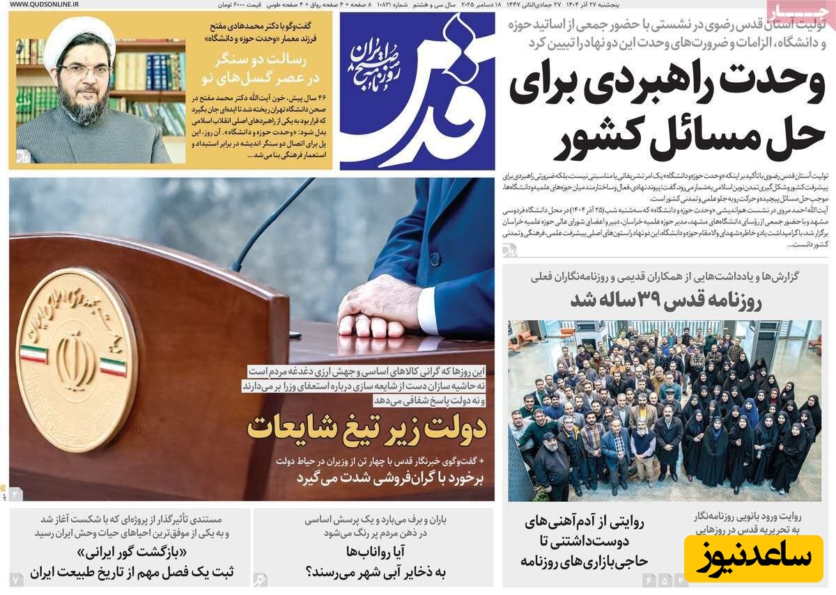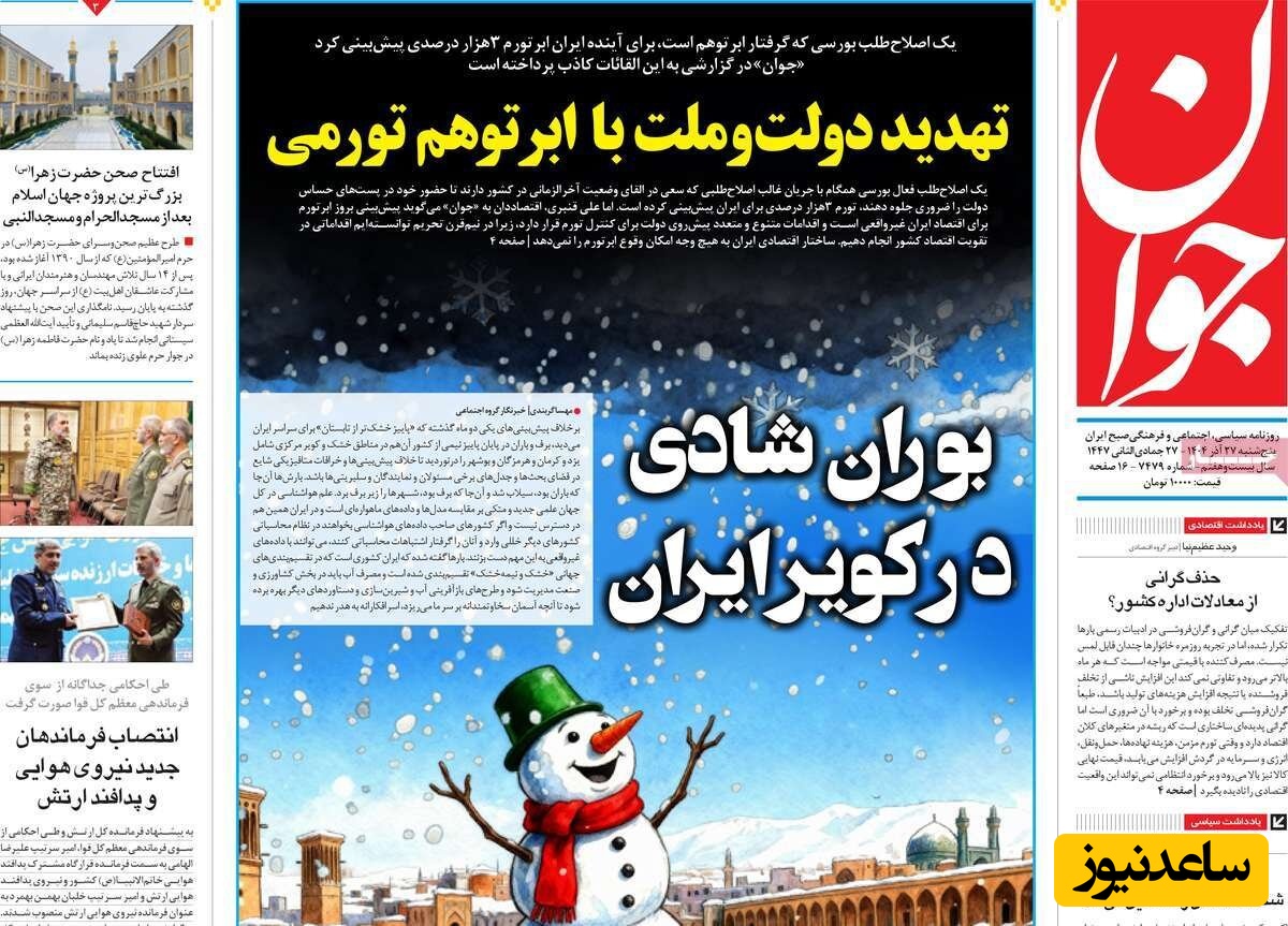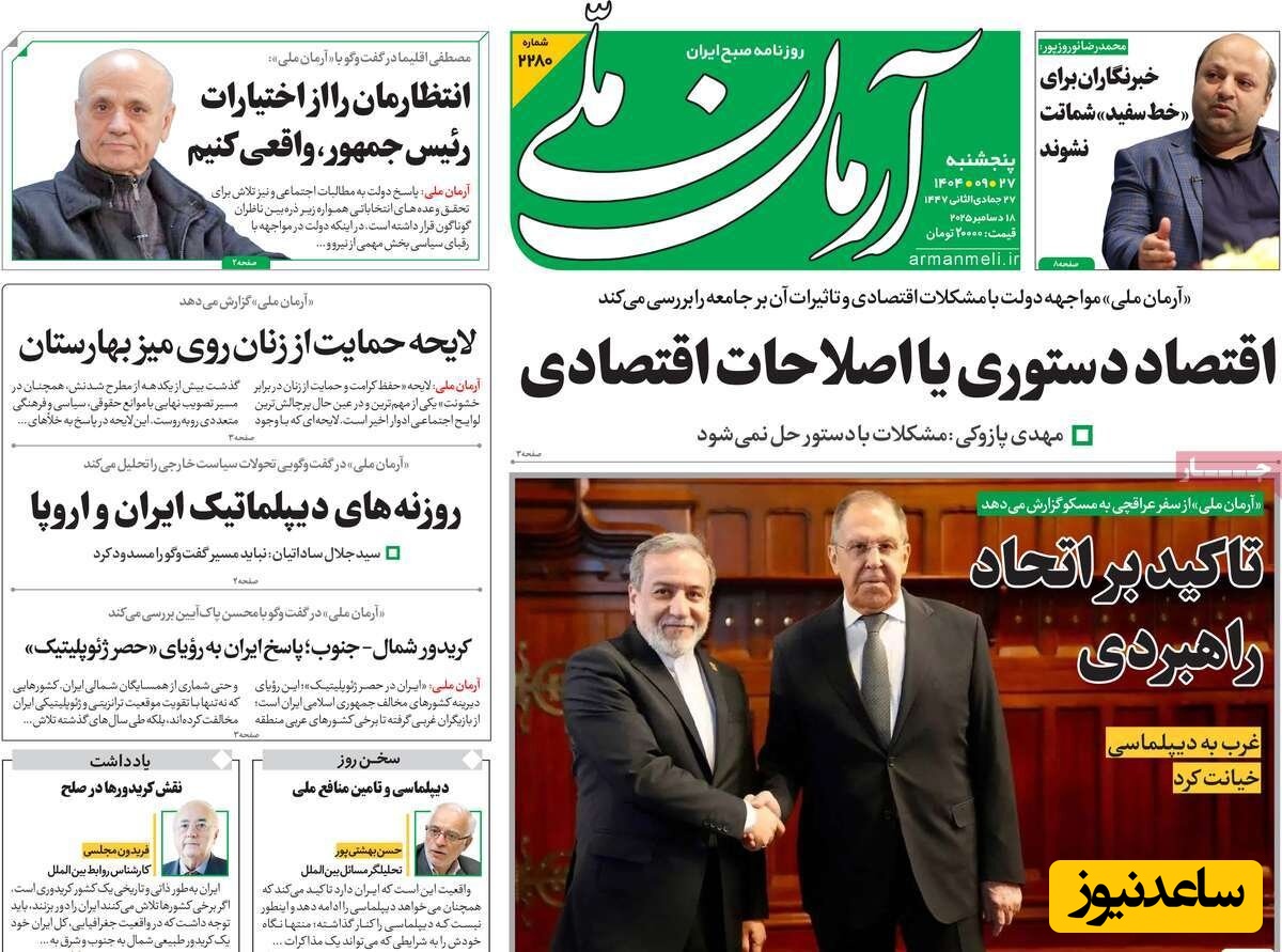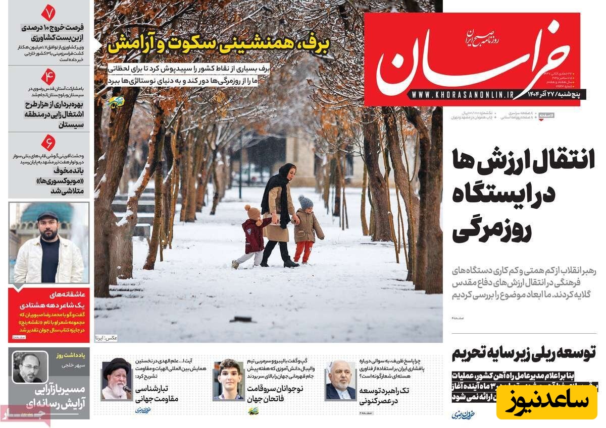 به گزارش سرویس سیاست پایگاه خبری ساعدنیوز، صفحات اول روزنامه های امروز، پنجشنبه 27 آذر را مشاهده میفرمایید.