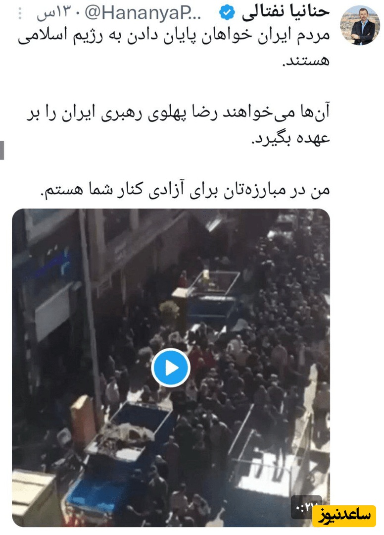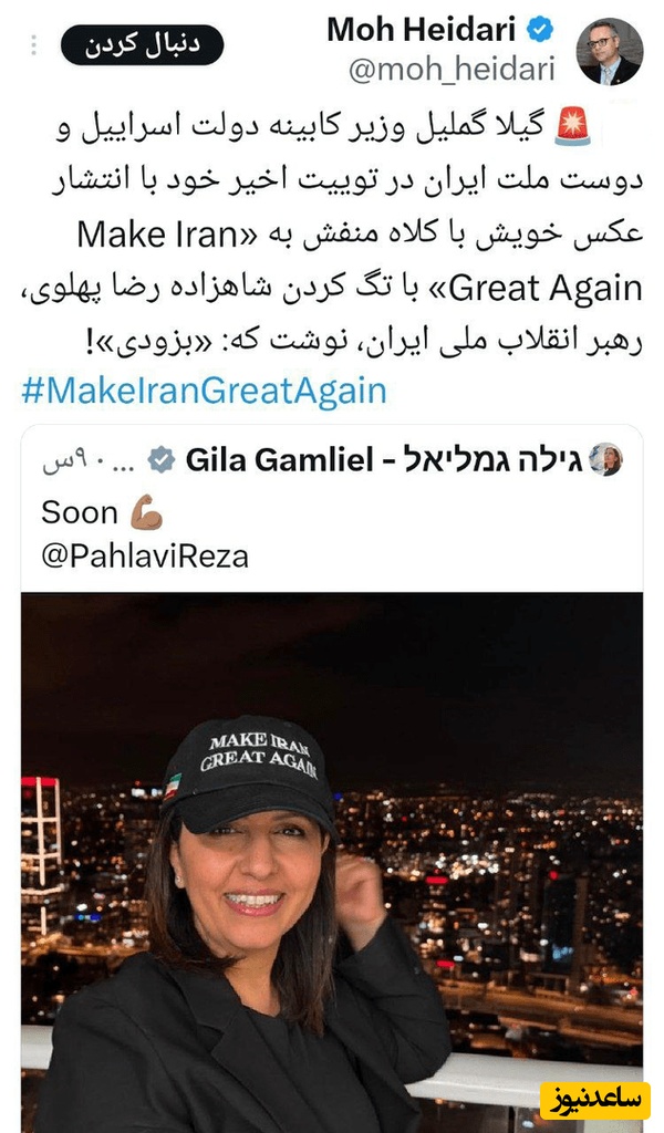 در همین راستا، «گیلا گاملیل» وزیر نوآوری، علوم و فناوری اسرائیل که پیش از این وزیر اطلاعات این رژیم بود و چندسالی است که به عنوان رابط رژیم با خاندان پهلوی فعالیت میکند طی یک توئیت سعی کرد خود را حامی آشوب نشان دهد. وی با یک کلمه «به زودی» از حضور این رژیم در ایران با حمایت از پهلوی سخن گفت. موضوعی که دخالت این رژیم در مسائل داخلی ایران را به خوبی نشان میدهد.