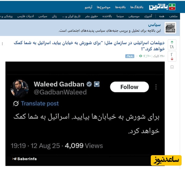 این موارد در حالی است که پیش از شکلگیری این تجمعات نیز عناصر و مقامات صهیونیست در فضای مجازی حمایت خود را به طور آشکار نسبت به ایجاد اغتشاش در ایران ابراز کرده بودند. موضوعی که به خوبی نشان میدهد هدف اسرائیل التهابزایی در کشور است. «ولید گادبن» دیپلمات صهیونیستی و نماینده این رژیم در سازمان ملل از جمله این عوامل بوده است که چندین بار قبل از تجمعات توئیتهای خود را به زبان فارسی در این زمینه تکرار کرده است.