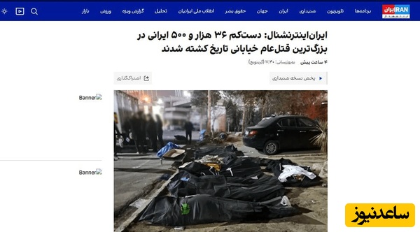 شبکه صهیونیستی اینترنشنال در روزهای گذشته مدعی شد که 12 هزار نفر در ایران کشته شدهاند. این رسانه بدسابقه در ادامه، باز هم بدون هیچ سند و مدرکی، تعداد کشته ها را 36 هزار و پانصد نفر اعلام کرد!