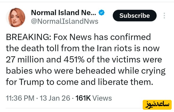 به گزارش سرویس سیاسی پایگاه خبری ساعدنیوز به نقل از فارس، در حالی که ناآرامیها و فعالیت هستههای تروریستی در برخی شهرهای کشور هنوز در جریان بود، شبکه اینترنشنال با اعلام عددی بالا از تلفات انسانی، تلاش کرد تصویری بحرانی و کنترلنشده از وضعیت ایران ارائه دهد. این آمار در قالب خبر فوری و زیرنویسهای تکرارشونده منتشر شد؛ بدون آنکه اسناد میدانی مشخص، نام منابع مستقل یا گزارشهای قابل راستیآزمایی بینالمللی همراه آن ارائه شود.