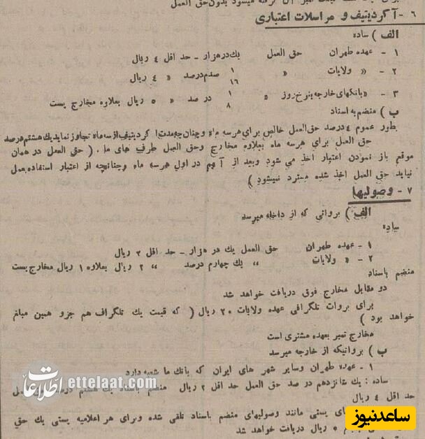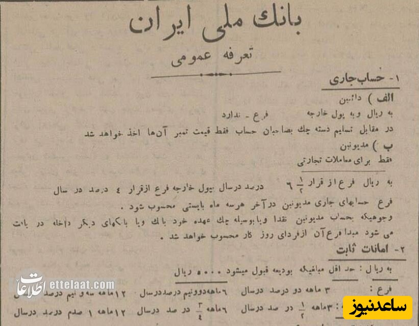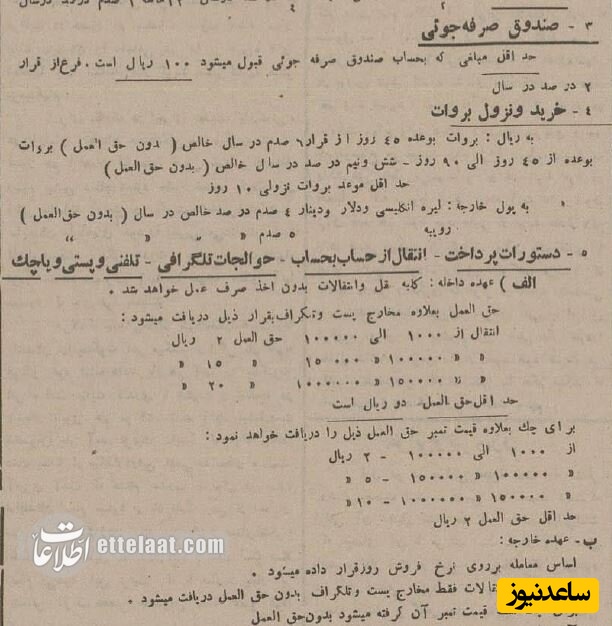 ساعدنیوز: در آذر سال 1313 بانک ملی ایران تعرفه خدمات بانکی خود را اعلام کرد.