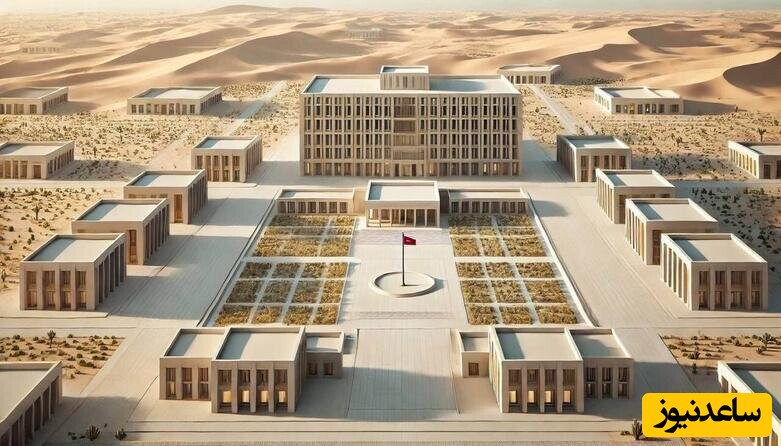 همچنین یک مجموعه بزرگ حکومتی با تلفیق معماری سنتی جنوب ایران و سبکهای مدرن در کنار باغهای سبز و نخلهای بلند و مجموعهای که شاید حیاط دولت باشد! حیاط مرکزی ریاست جمهوری با طراحی کاربردی و هماهنگی با محیط بومی.