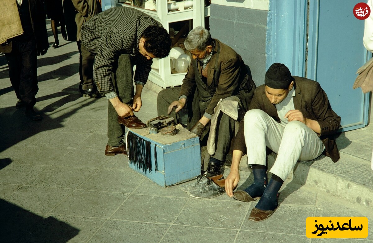بساط واکسی در خیابان شاهآباد، نزدیک میدان بهارستان؛ سال 1345