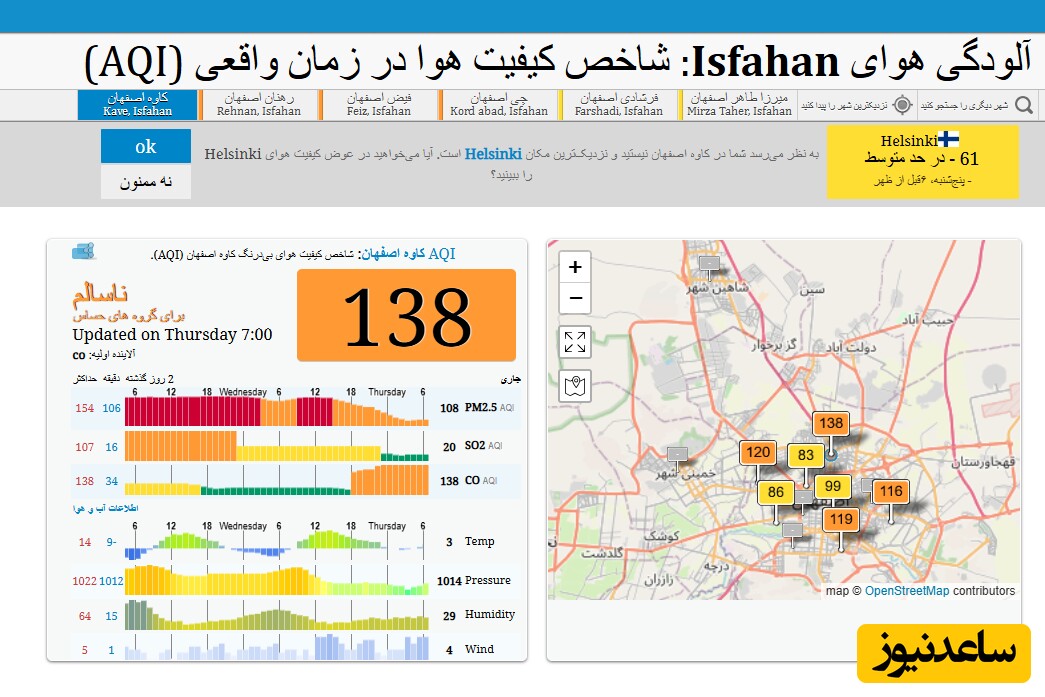 وضعیت شاخص کیفیت آب و هوای اصفهان