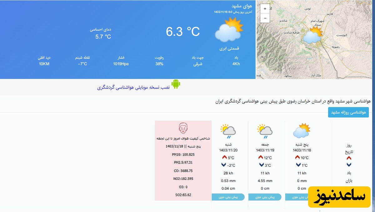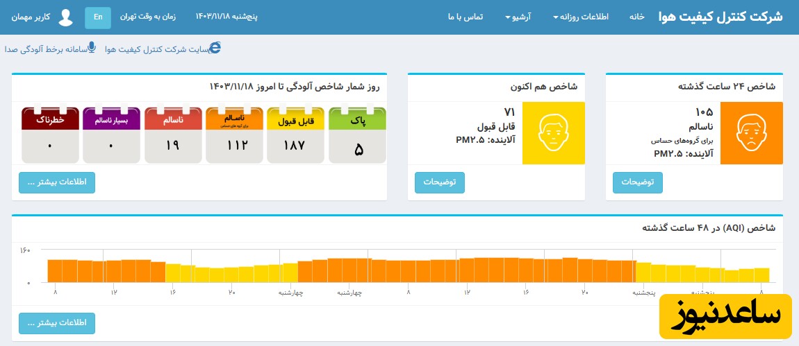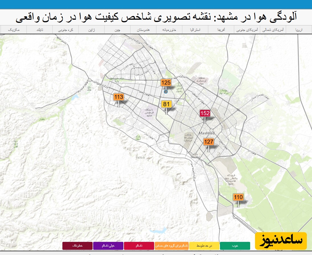 وضعیت شاخص کیفیت آب و هوای مشهد