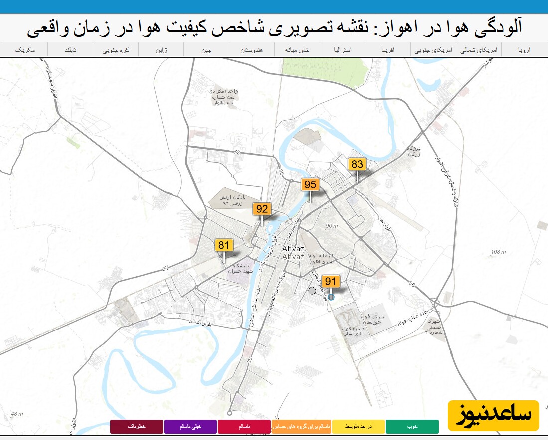 وضعیت شاخص کیفیت آب و هوای اهواز
