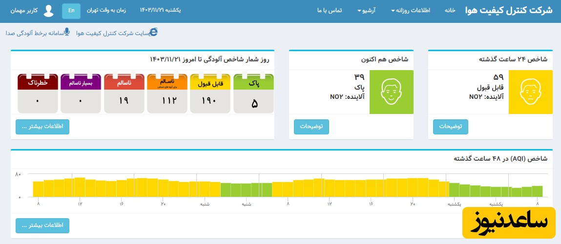 وضعیت شاخص کیفیت آب و هوای مشهد