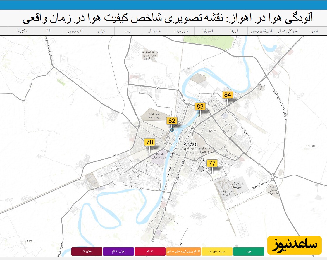 وضعیت شاخص کیفیت آب و هوای اهواز