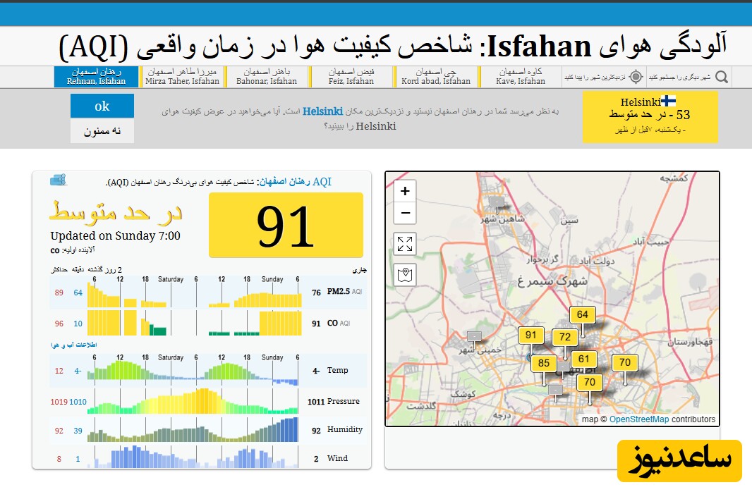 وضعیت شاخص کیفیت آب و هوای اصفهان