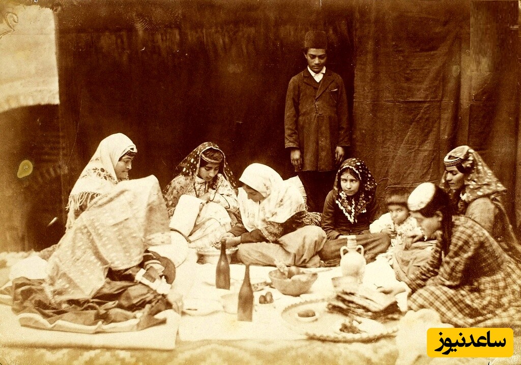 به گزارش سرویس تاریخ ساعد نیوز، همانطور که در عکس مشاهده میکنید تعدادی از زنان و دختران حرمسرای قاجار بر سر سفره نشسته و خواجه هم آماده به خدمت ایستاده تا اوامر بانوان را اجرایی کند.