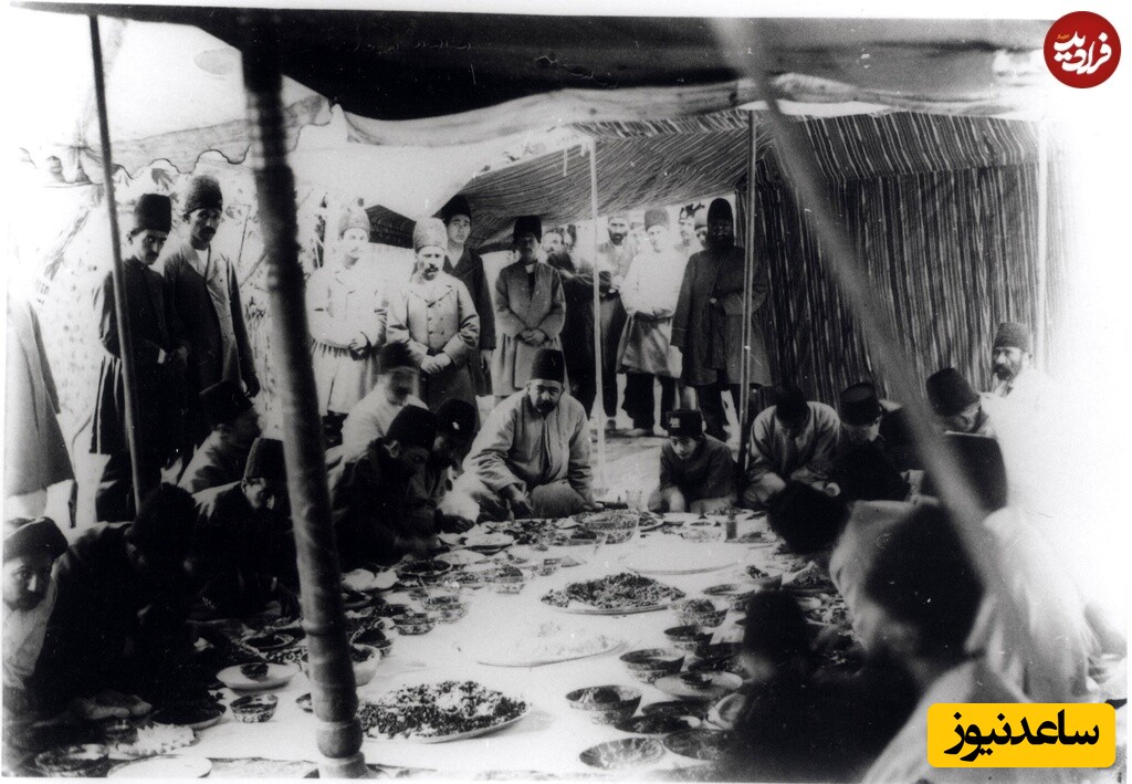 ساعد نیوز: 3 عکس دیده نشده از چیدمان مجلل سفره غذای ناصرالدین شاه و همراهانش در پیکنیک، ناصرالدین شاه و مهمانی خانه صدر اعظم را در قاب تاریخ امروز مشاهده بفرمایید.