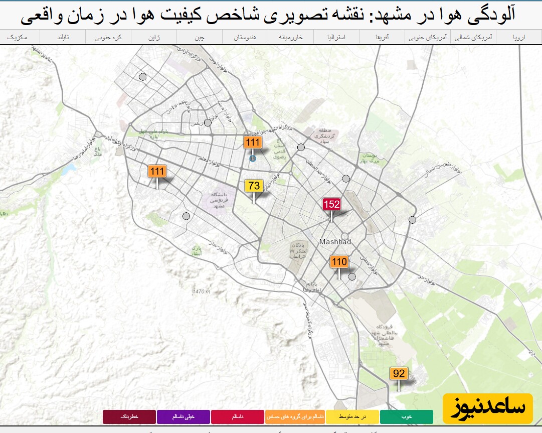 وضعیت شاخص کیفیت آب و هوای مشهد