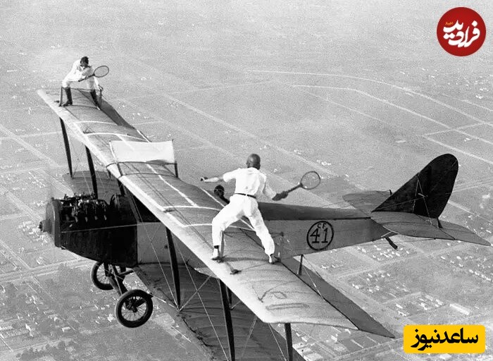 به گزارش سرویس تاریخ ساعد نیوز، در ادامه تصویری غافلگیرکننده از تنیس بازی کردن واقعی دو مرد به نام های گلدیس روی و ایوان آنگر را روی هواپیما و در ارتفاع 3 هزار فوتی مشاهده می کنید. این تصویر در سال 1304 هجری شمسی به ثبت رسیده است
