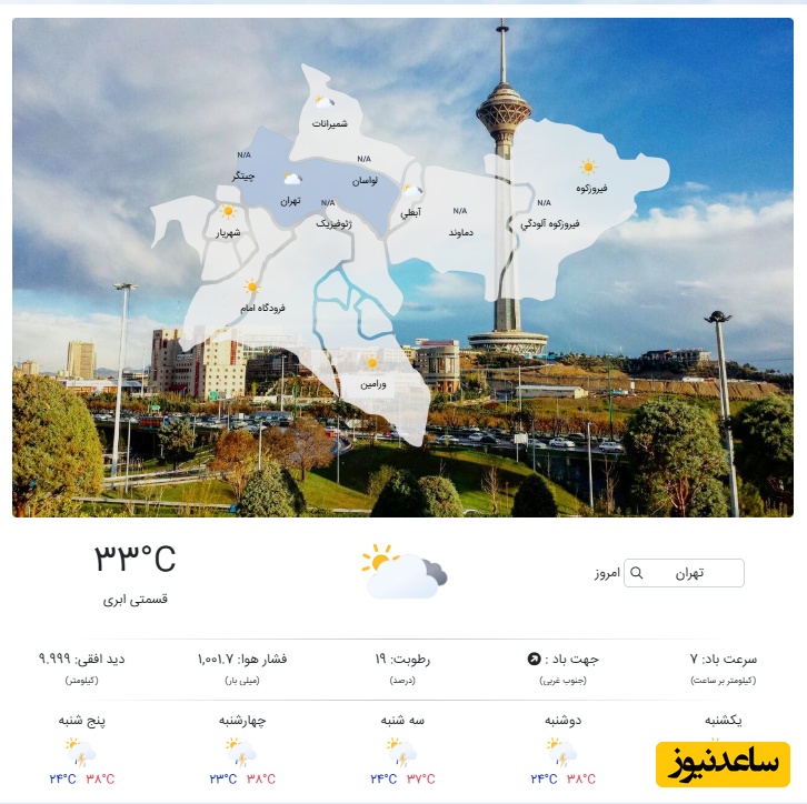 وضعیت آب و هوای امروز شنبه 21 تیر تهران، تبریز، اصفهان، مشهد، اهواز، قزوین، شیراز، بوشهر، رشت، ارومیه، کرمانشاه و یزد