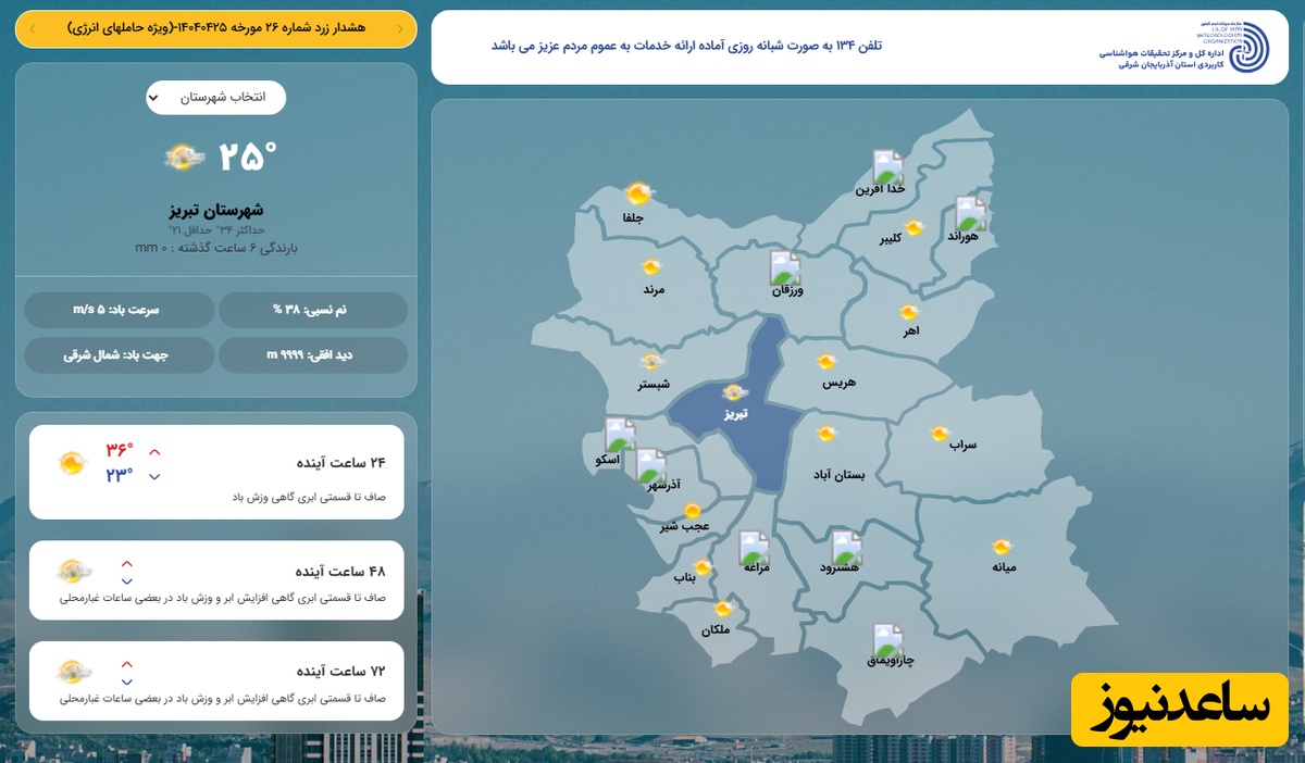 برای دسترسی سریعتر به وضعیت آب و هوای هر منطقه روی شهر موردنظر در زیر کلیک کنید: