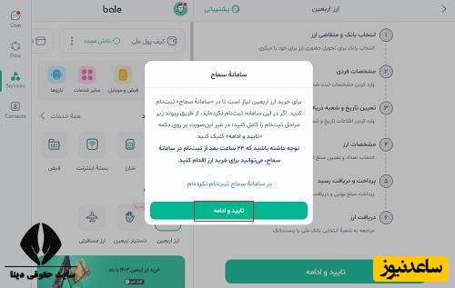 سپس، از آنجایی که افراد 24 ساعت پس از ثبت نام در سامانه سماح اربعین 1404 می توانند نسبت به خرید ارز اربعین از برنامه بله اقدام کنند گفته شده که افراد باید حتما در سامانه سماح ثبت نام کرده باشند و در صورت ثبت نام در سامانه سماح بر روی گزینه تایید و ادامه کلیک کنند تا ادامه مراحل ثبت نام ارز اربعین را انجام دهند.