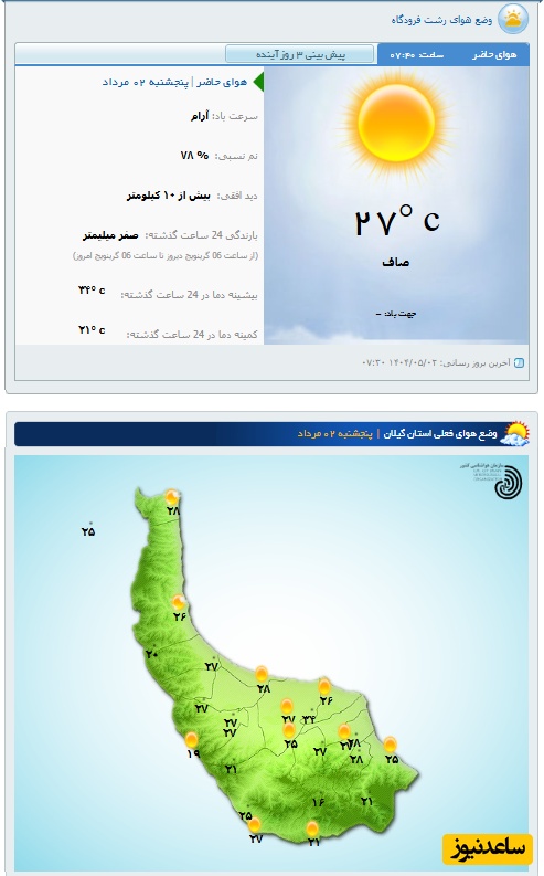 وضعیت آب و هوای امروز رشت