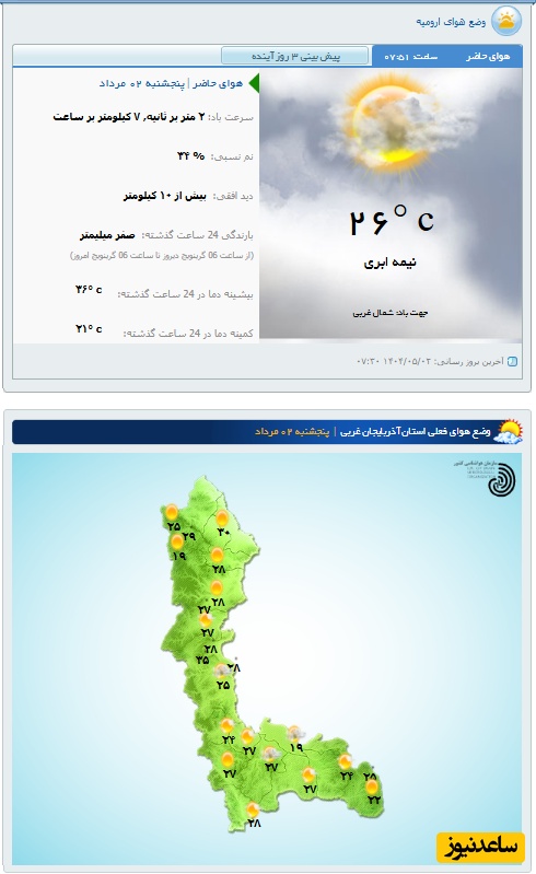 وضعیت آب و هوای امروز ارومیه