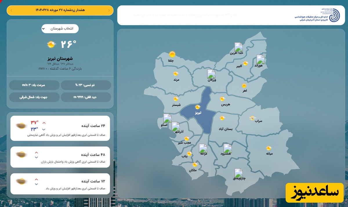 وضعیت آب و هوای امروز تبریز