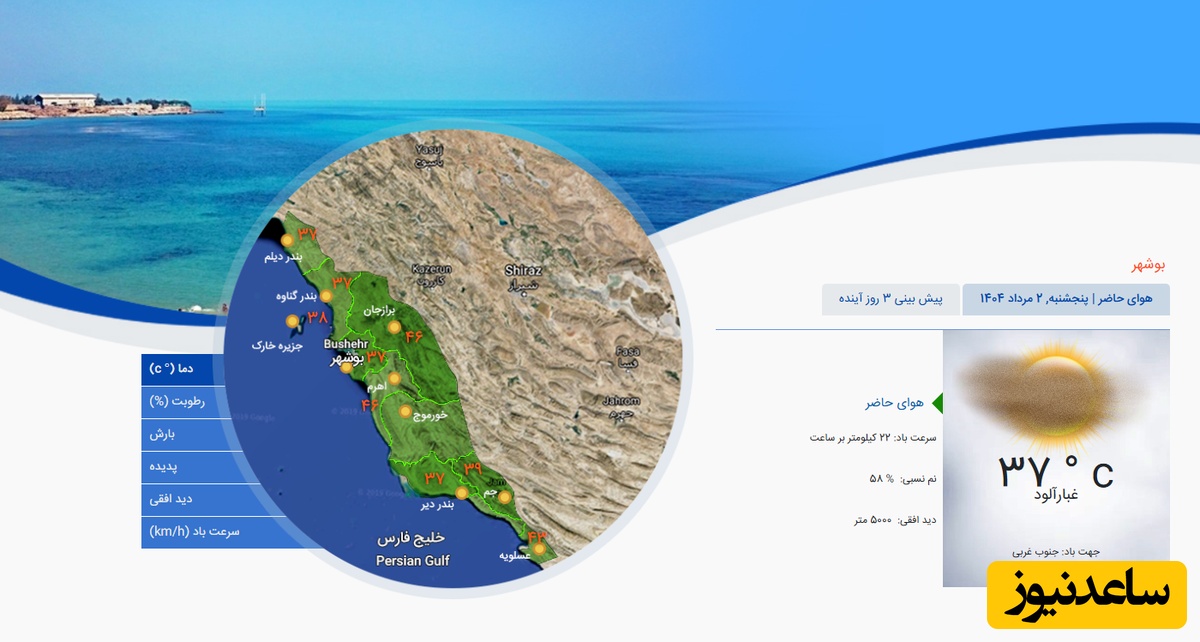 وضعیت آب و هوای امروز بوشهر