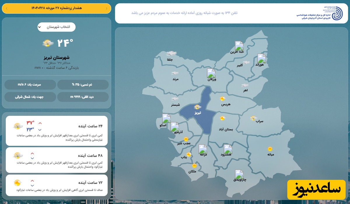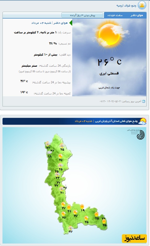 برای دسترسی سریعتر به وضعیت آب و هوای هر منطقه روی شهر موردنظر در زیر کلیک کنید: