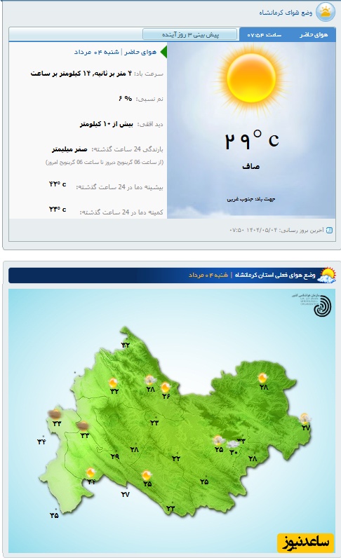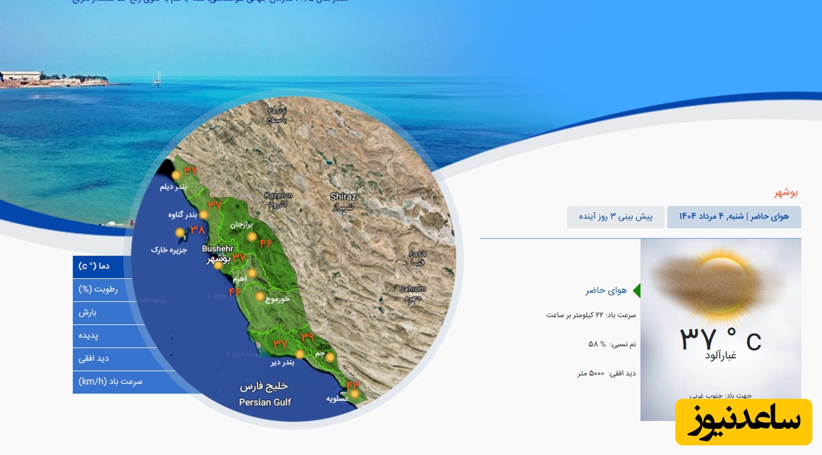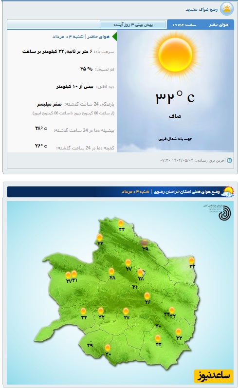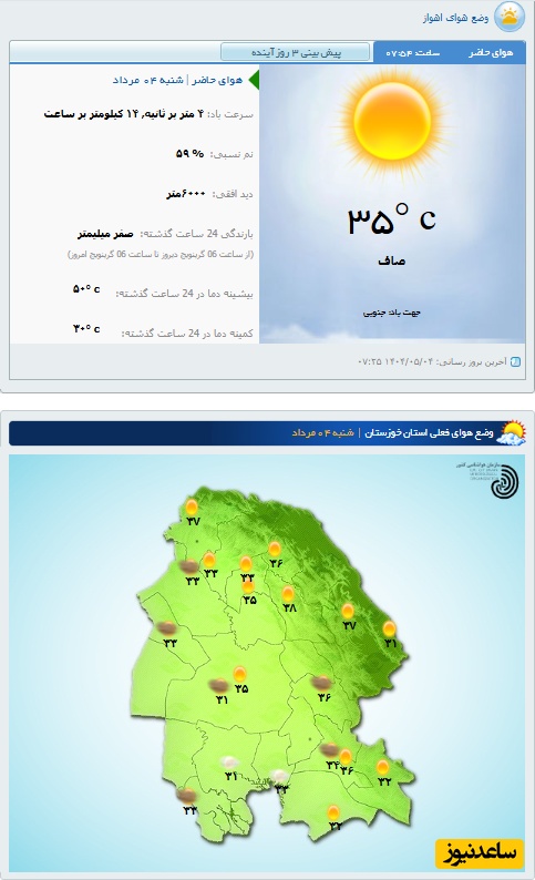 وضعیت آب و هوای امروز شنبه 4 مرداد تهران، تبریز، اصفهان، مشهد، اهواز، قزوین، شیراز، بوشهر، رشت، ارومیه، کرمانشاه و یزد