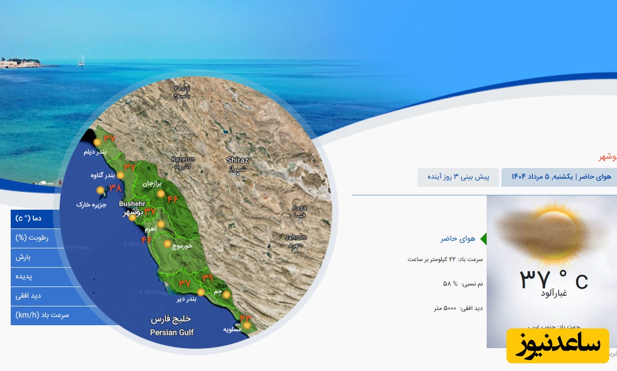 وضعیت آب و هوای امروز بوشهر