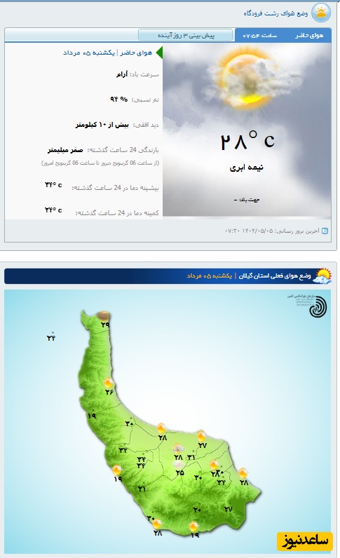 وضعیت آب و هوای امروز رشت