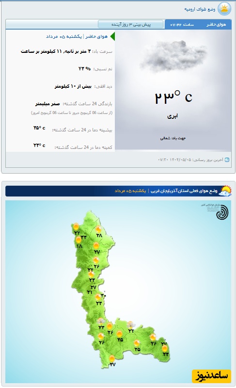 وضعیت آب و هوای امروز ارومیه